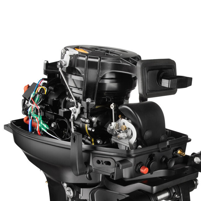 Мотор запускается ручным стартером, а управляется стандартным румпелем с поворотной ручкой газа (гашеткой мотоциклетного типа) с анти-проскальзывающими насечками. На ручном стартере предусмотрена блокировка, не позволяющая запускать мотор при включенной передаче (запуск возможен только на нейтрали).