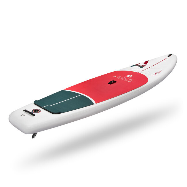 SUP-доска Aqua Arrow 11.4 — это универсальная надувная доска для гребли, созданная для тех, кто ценит скорость, прямолинейность хода и исключительную стабильность. Ее удлиненный форм-фактор делает ее идеальным выбором для длительных прогулок, фитнес-тренировок, турингов и гребли в одиночку или с небольшим грузом. Благодаря технологии тканевого плетения и жесткости до 12-15 PSI, вы получаете надежный контроль и ощущение серфовой доски.